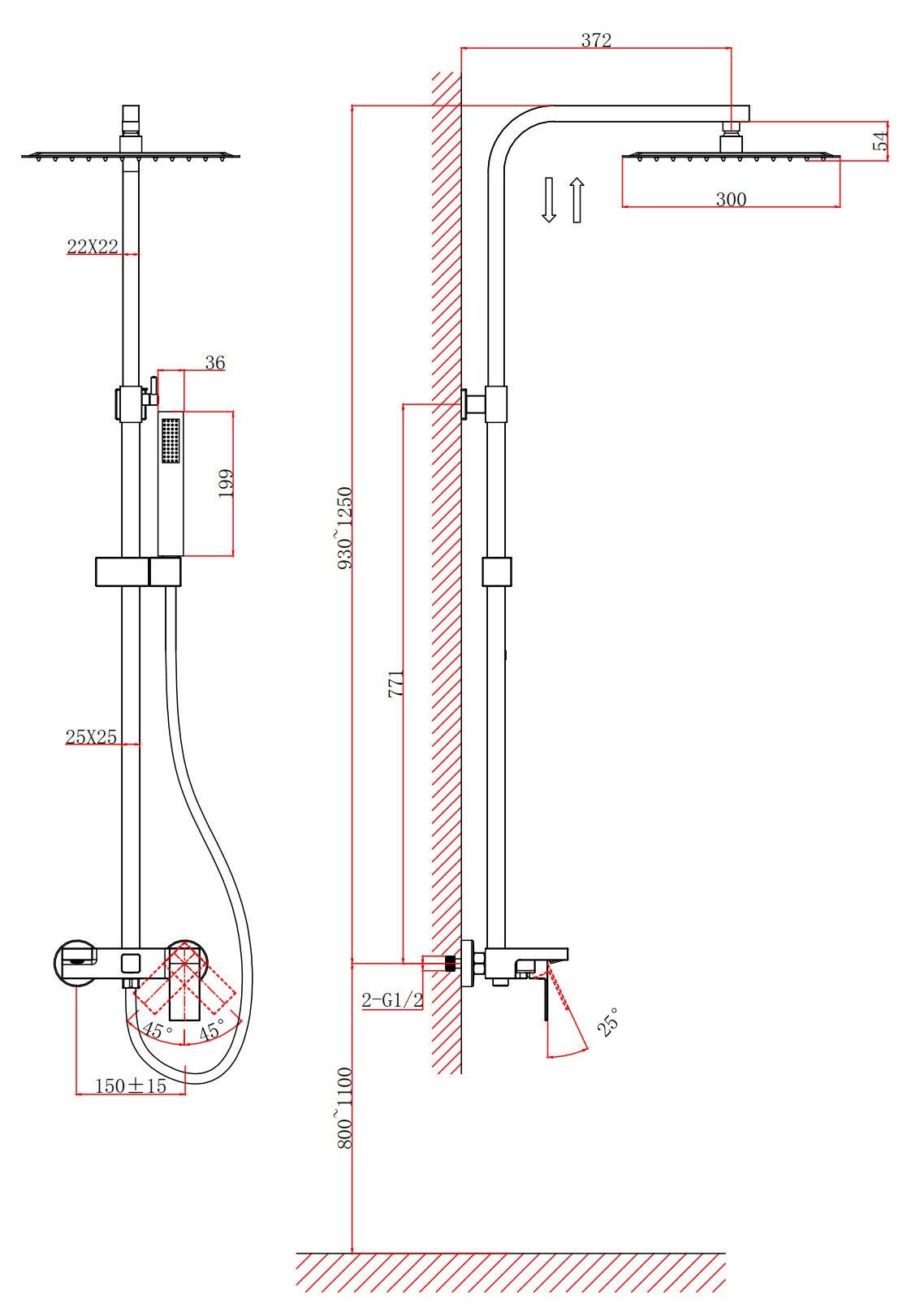 Размер верхнего душа, см:30