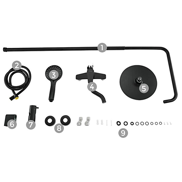 Размеры (см.):Диаметр штанги душевой стойки - 25 мм.
