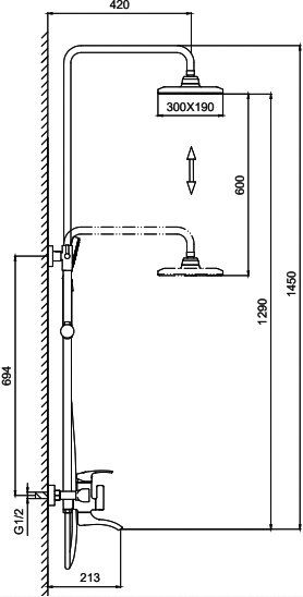 Вылет верхнего душа: 42 см