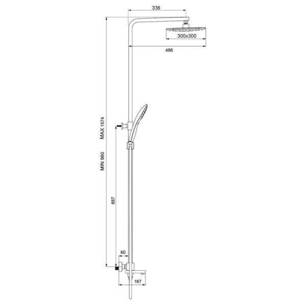 • высота душевой стойки: 1100-1668 мм