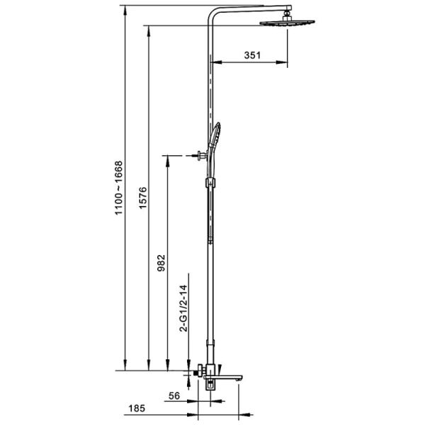 • высота душевой стойки: 945-1500 мм