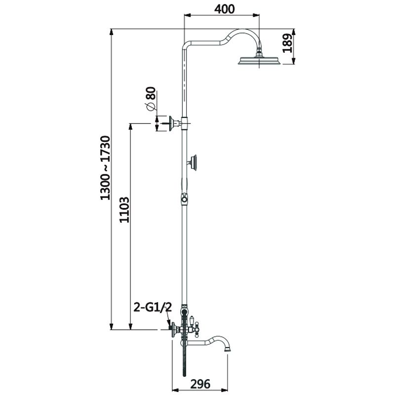 • высота душевой стойки: 1300-1730 мм