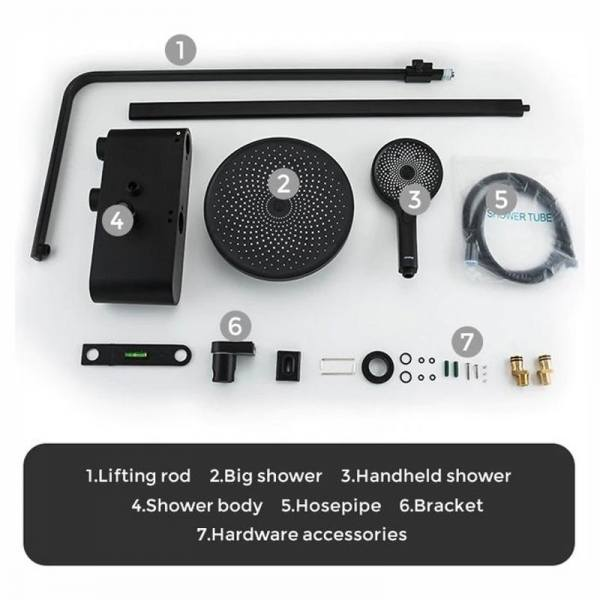 Черная душевая система со смесителем полкой Gappo G2495, смеситель из латуни. Тропический душ системы и ручной душ изготовлены из ABS-пластика со системой легкой очистки от известкового камня.