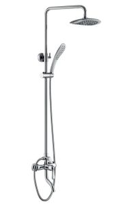 Душевая система Haiba.Изготовлена из высококачественной латуни.Прекрасный тропический душ.Излив для наполнения ванны.Душевая штанга регулируется по высоте от 80 см до 121 см.