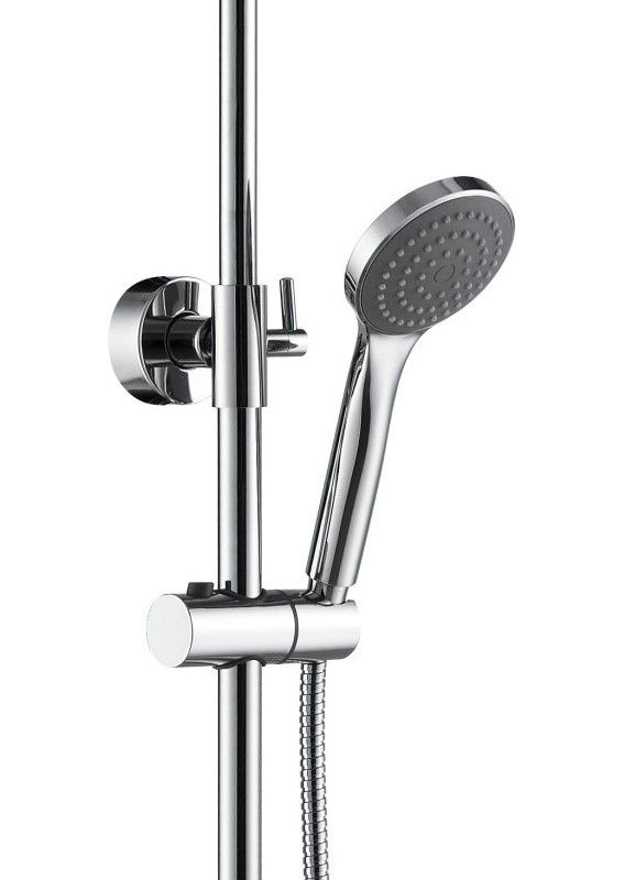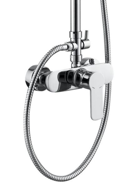 Душевая система Haiba.Изготовлена из высококачественной латуни.Прекрасный тропический душ.Без излива для наполнения ванны.Душевая штанга регулируется по высоте от 87 см до 123 см.