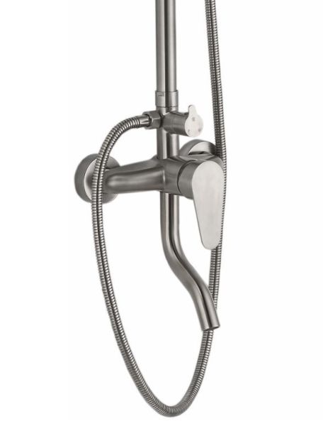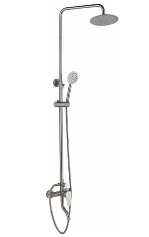 Душевая система Haiba.Изготовлена из высококачественной нержавеющей стали.Прекрасный тропический душ.Излив для наполнения ванны.Душевая штанга регулируется по высоте от 88,2 см до 153,2 см.