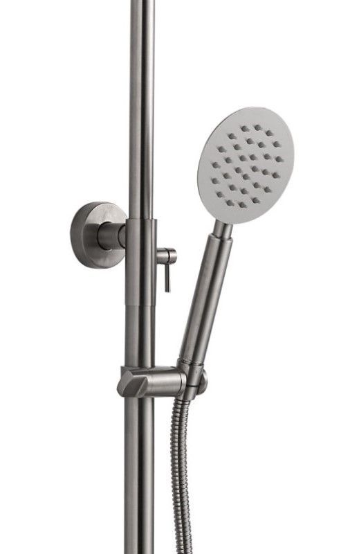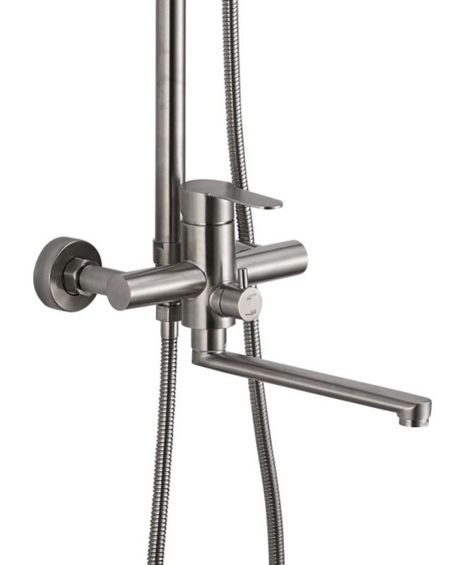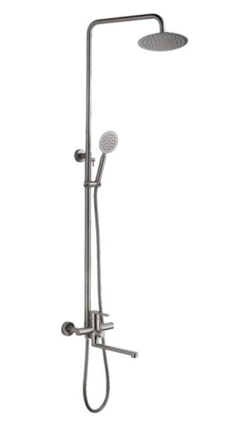 Душевая система Haiba.Изготовлена из высококачественной нержавеющей стали.Прекрасный тропический душ.Излив для наполнения ванны.Душевая штанга регулируется по высоте от 95 см до 150,6 см.