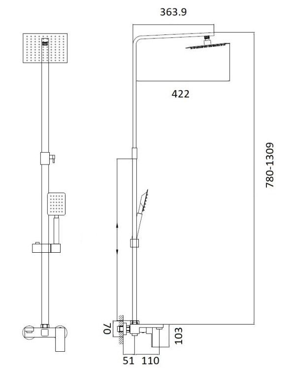 Душевая система Haiba.Изготовлена из высококачественной нержавеющей стали.Прекрасный тропический душ.Излив для наполнения ванны.Душевая штанга регулируется по высоте от 78 см до 130,9 см.