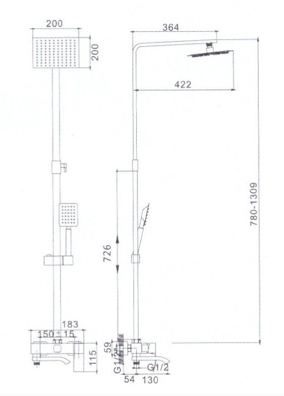 Душевая система Haiba.Изготовлена из высококачественной нержавеющей стали.Прекрасный тропический душ.Излив для наполнения ванны.Душевая штанга регулируется по высоте от 78 см до 131 см.