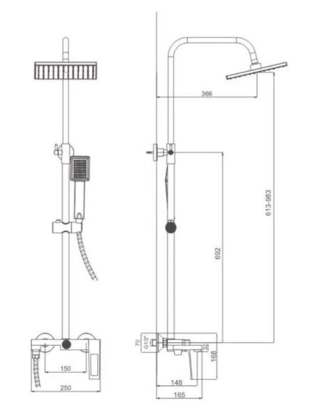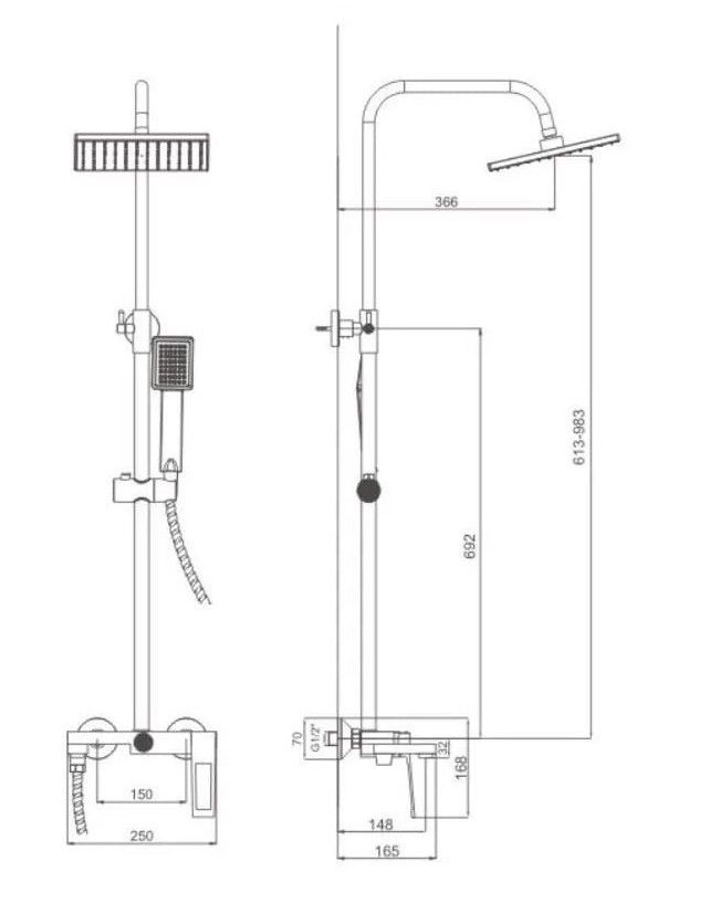 Душевая система Haiba.Изготовлена из высококачественной латуни.Прекрасный тропический душ.Излив для наполнения ванны, который также служит переключателем потока воды на душ.Душевая штанга регулируется по высоте от 78 см до 130 см.