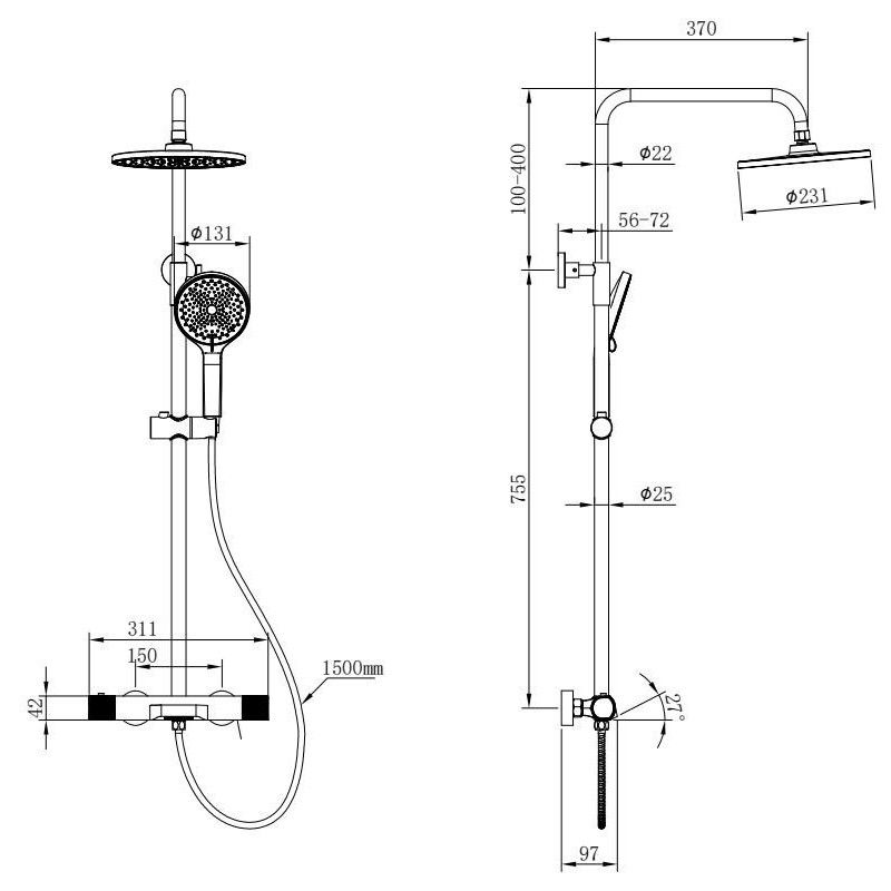 Размер верхнего душа, см:23