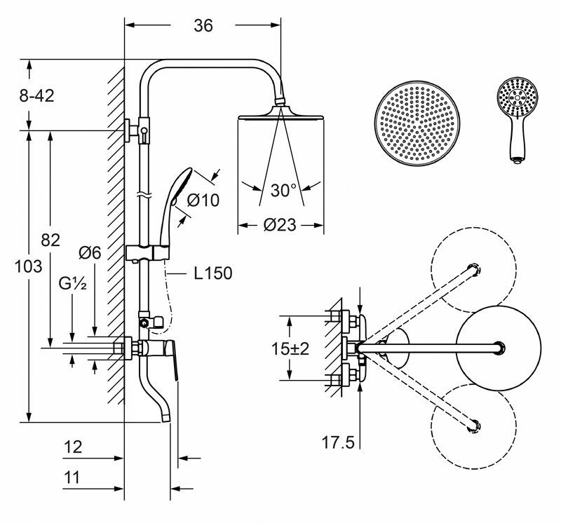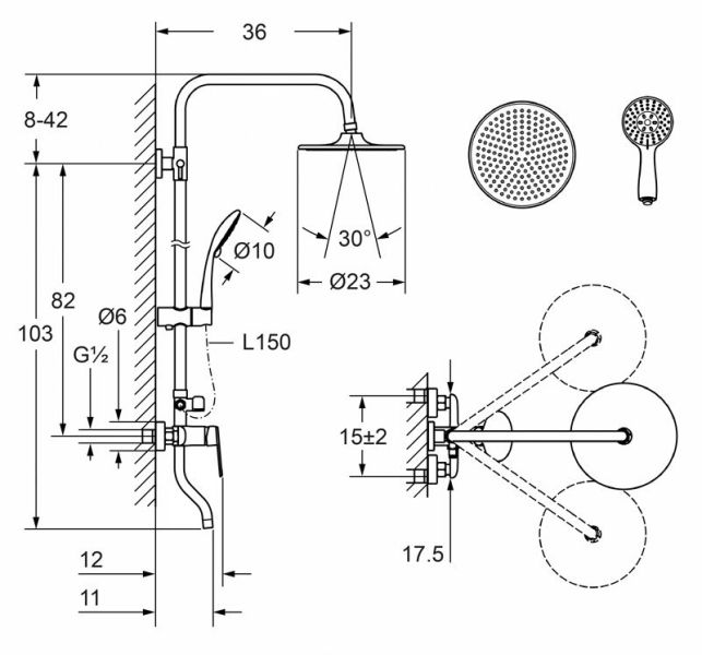 Душевая система Laguraty 17060B черная будет смотреться в ванной комнате красиво и практично, ведь она сочетает в себе все лучшие характеристики. Изготовлена она латуни. Большой верхний душ размером в 21.5см. Душевая лейка 12см с тремя режимами эргономичная, легко и приятно держится в руке. Силиконовые форсунки. Регулировка душевой системы по высоте. Все нужные для установки крепления идут в упаковке. Сама установка душевой системы простая и понятная.