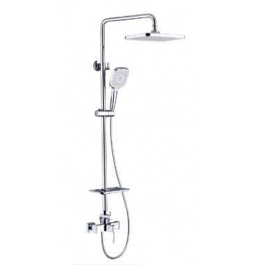 Смеситель для душа с регулируемой высотой штанги и верхней душевой лейкой "Тропический дождь"Керамический картридж 35 мм