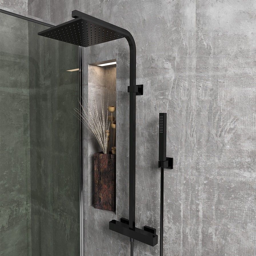 Душевая стойка Paini Dax-R 84PZ689TH с термостатом чёрный матовый купить