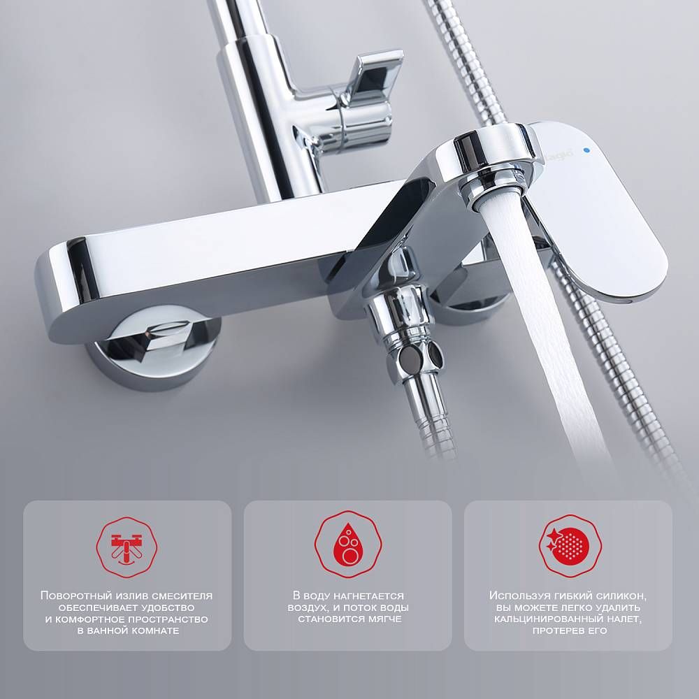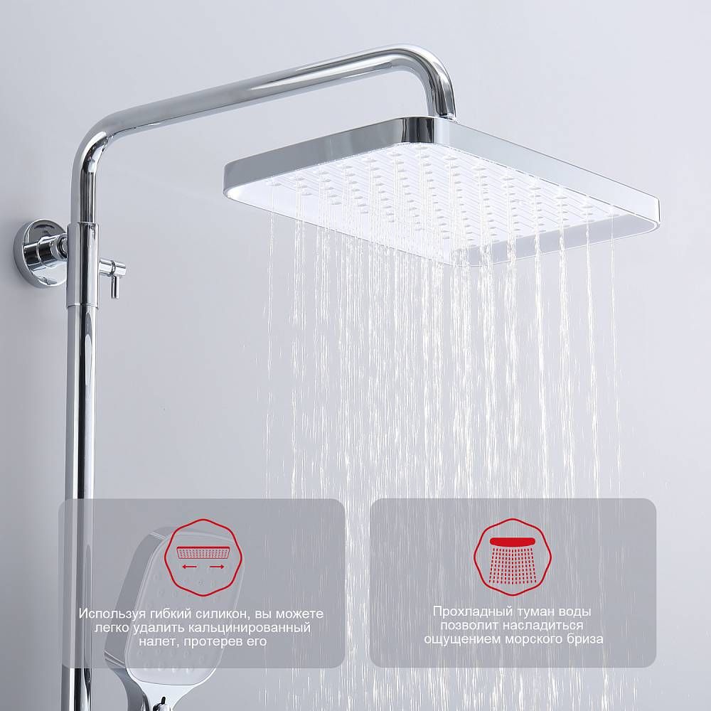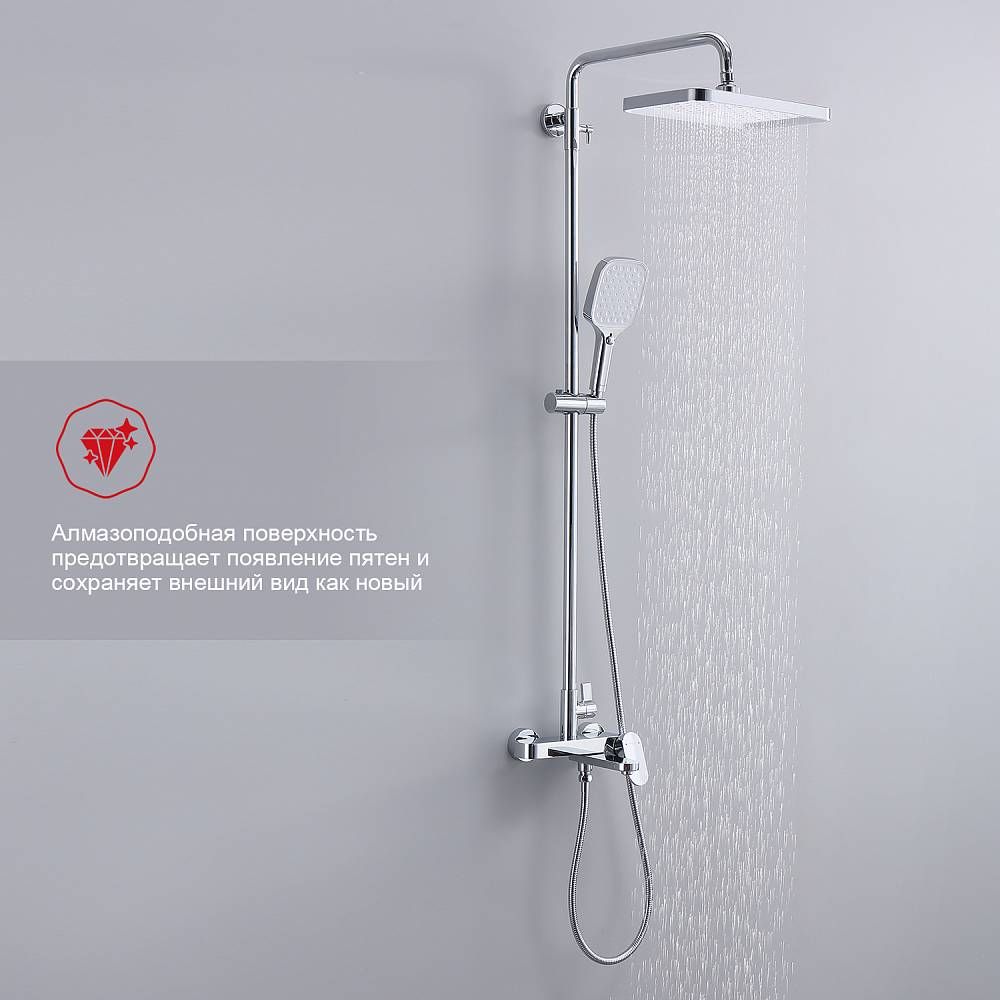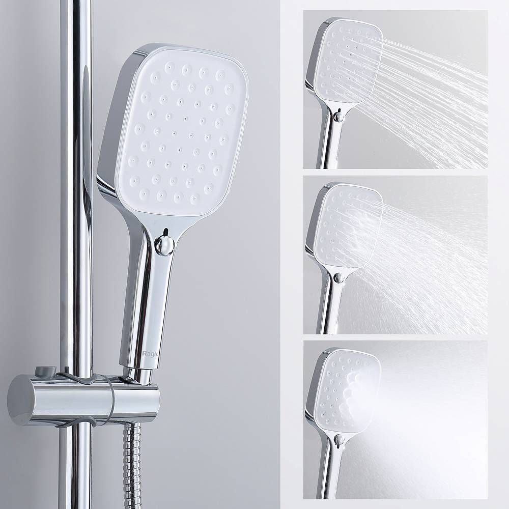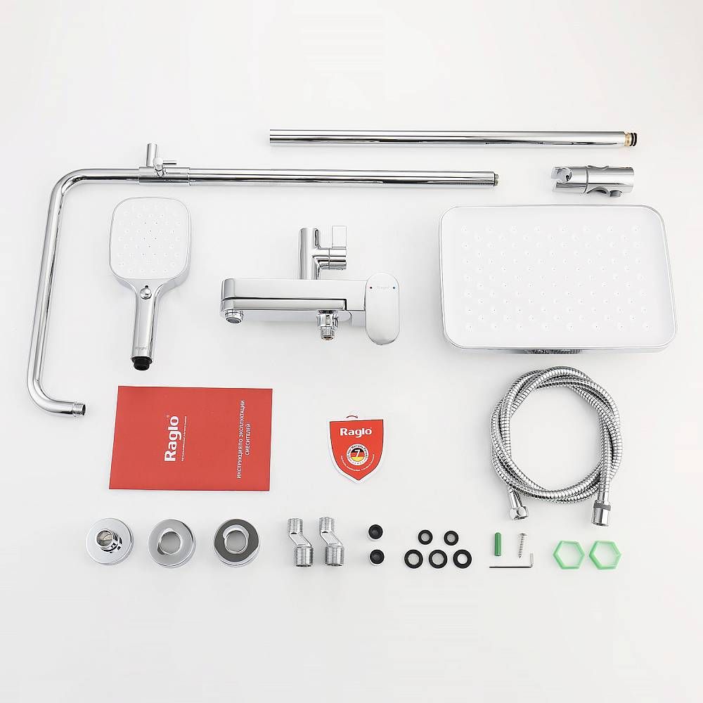 Душевая система Raglo R50.24.Материал: латунь.Управление: однорычажное.Механизм: керамический картридж.Излив: поворотный. Аэратор.Регулируемая по высоте душевая штанга: 1225-1675 мм.Форма верхнего душа: прямоугольная.Размер верхнего душа 312х212 мм.Регулируемый по высоте держатель ручного душа.Количество режимов струи ручного душа: 3.Отверстия для монтажа: 3.Стандарт подводки: G 1/2.Монтаж: на стену.