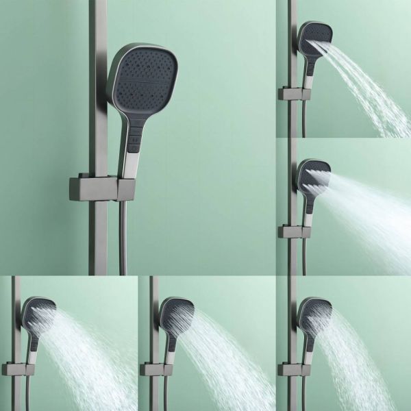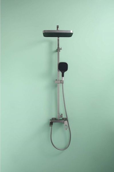 Душевая система Raglo R51.24.09Материал: латунь.Управление: однорычажное.Механизм: керамический картридж.Излив: поворотный. Аэратор.Регулируемая по высоте душевая штанга: 1087-1655 мм.Форма верхнего душа: прямоугольная.Размер верхнего душа (ШхД): 330х220 мм.Регулируемый по высоте и наклону держатель ручного душа.Количество режимов струи ручного душа: 4.Отверстия для монтажа: 3.Стандарт подводки: G 1/2.Монтаж: на стену.