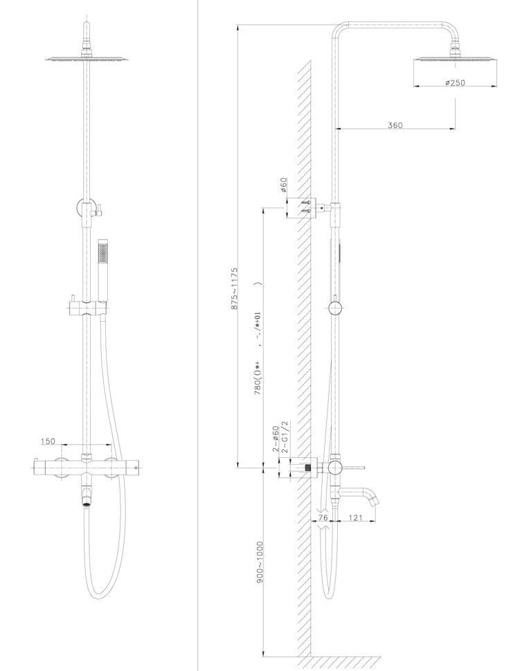 душевой шланг ПВХ 150см, душевая труба из латуни,