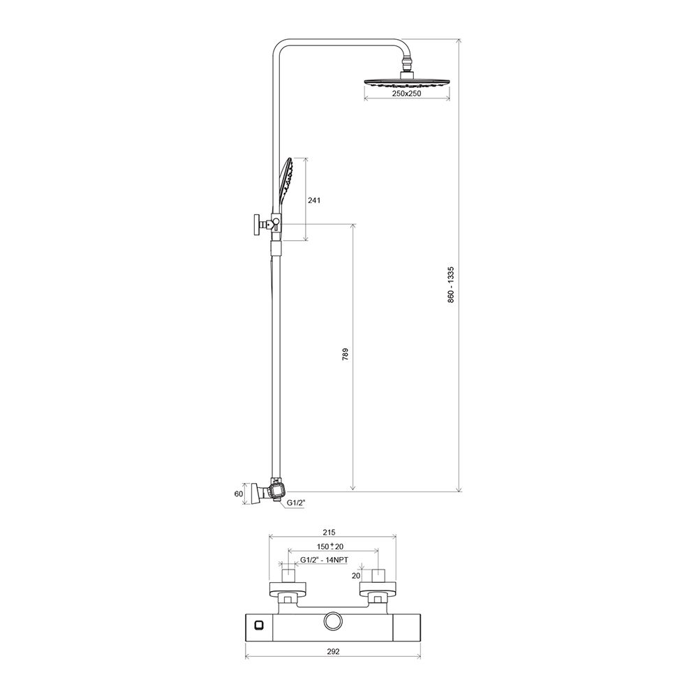 Душевая стойка Ravak 10° TD 091.00/150 X070103 с термостатом