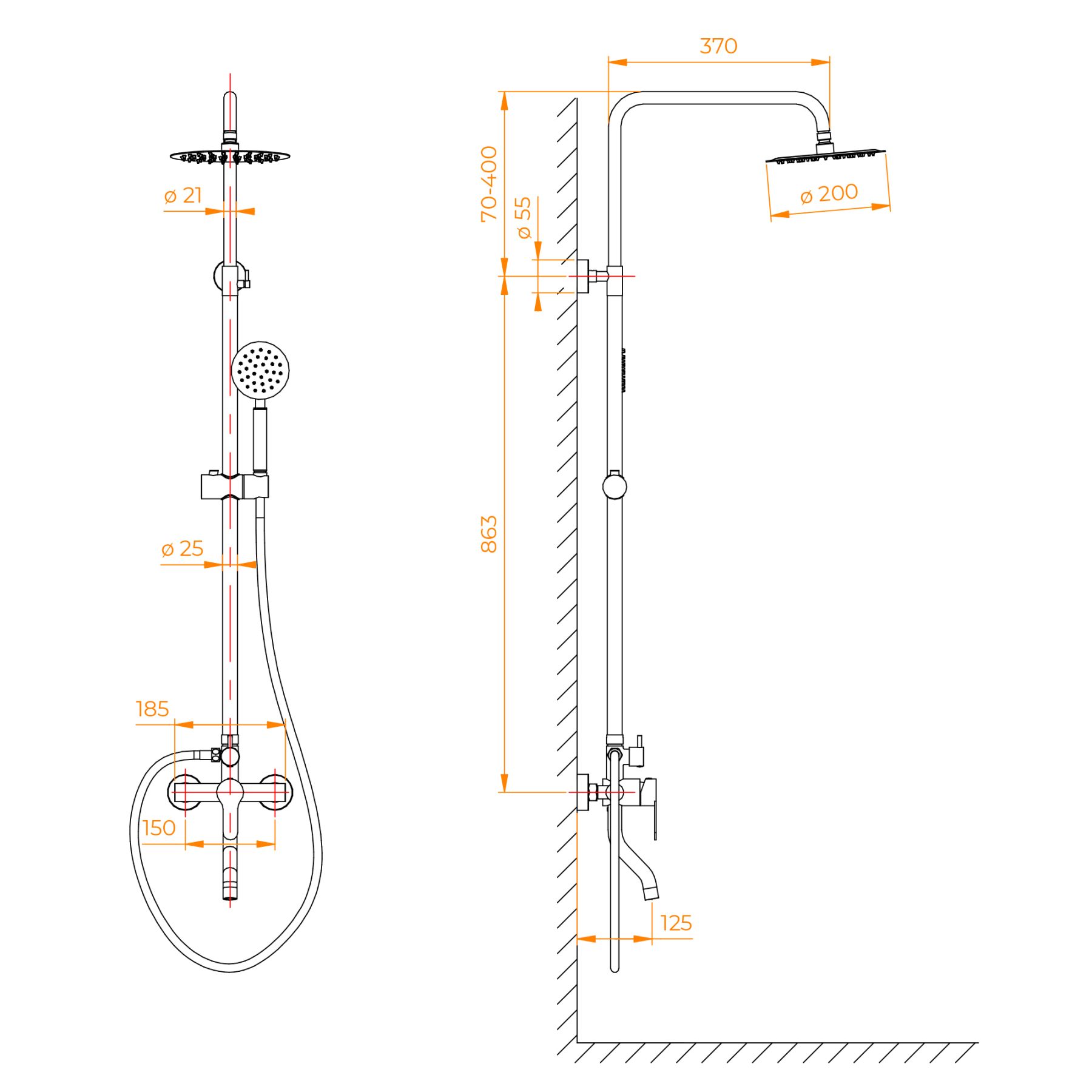 Душевая стойка RGW Shower Panels 59140124-13 - идеальное решение для вашей ванной комнаты. Изготовлена из высококачественных материалов: латунь и нержавеющая сталь, обеспечивая прочность и долговечность. Верхний душ имеет диаметр 20 см и круглую форму, обеспечивая комфортный и равномерный поток воды. Шланг изготовлен из стали и имеет длину 1.5 метра для удобства использования. Смеситель сделан из латуни, оснащен керамическим картриджем, обеспечивая долгий срок службы до 10 лет. Подключение осуществляется через резьбу 1/2 дюйма. Подходит для бытового использования. В комплекте также имеется ручной душ из нержавеющей стали AISI 304 с регулировкой высоты и держатель для него. Стальная штанга с регулировкой высоты верхнего душа и удлиненный излив обеспечивают дополнительный комфорт во время принятия душа.Комплектация и материал исполнения: