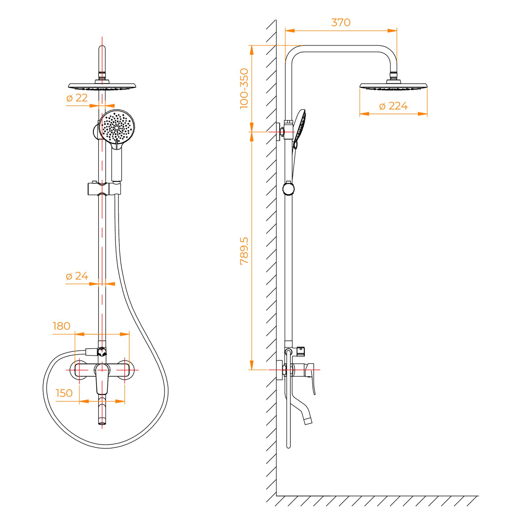 - Стальная штанга с регулировкой высоты головного душа
