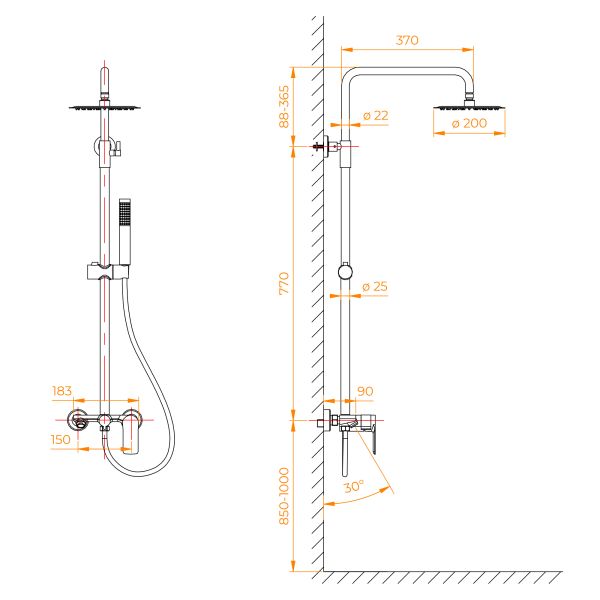 • Головной душ выполнен из нержавеющей стали AISI 304 оснащён со шарнирным креплением, что позволяет выбрать необходимый угол направления воды;