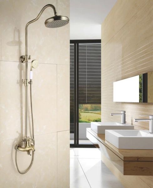 Душевая система Rose R0136Q, бронза.Монтаж: настенный.Стилистика дизайна: ретро.Управление: рычажное.Размер верхнего душа: 21x21.Форма верхнего душа: круглая.