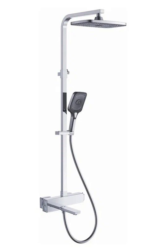 Душевая система с термостатом Rose R1096, хром.Монтаж: настенный.Стилистика дизайна: современный стиль.Управление: термостат.Размер верхнего душа: 30x19.Форма верхнего душа: прямоугольная.