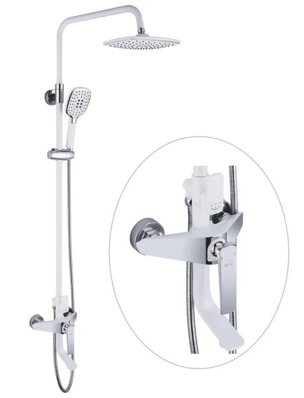 Душевая система Rose R1336F, белый/хром.Монтаж: настенный.Стилистика дизайна: современный стиль.Управление: рычажное.Размер верхнего душа: 26x20.Форма верхнего душа: прямоугольная.