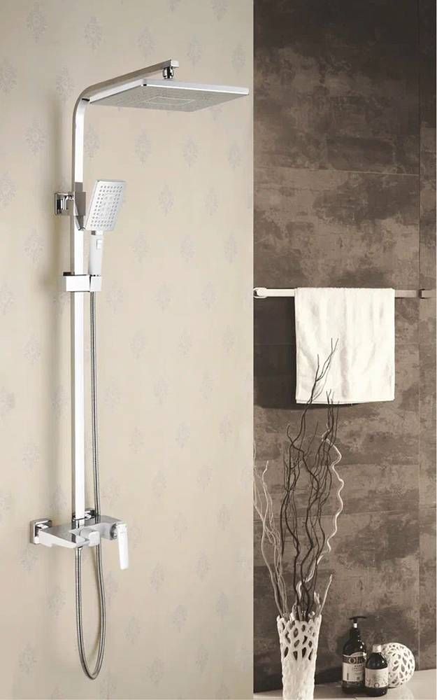 Душевая система Rose R1636F, белый/хром.Монтаж: настенный.Стилистика дизайна: современный стиль.Управление: рычажное.Размер верхнего душа: 30x20.Форма верхнего душа: прямоугольная.