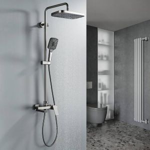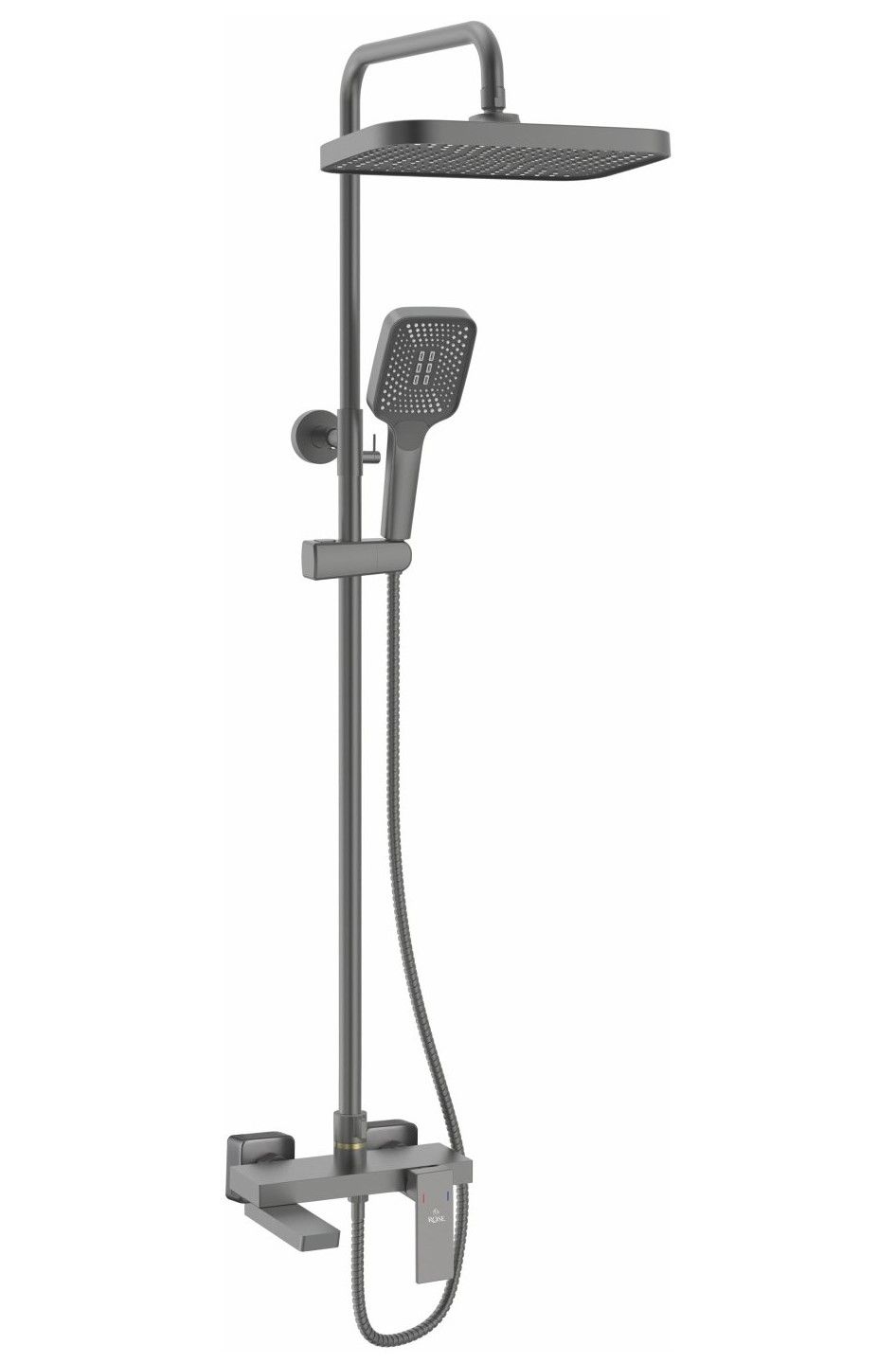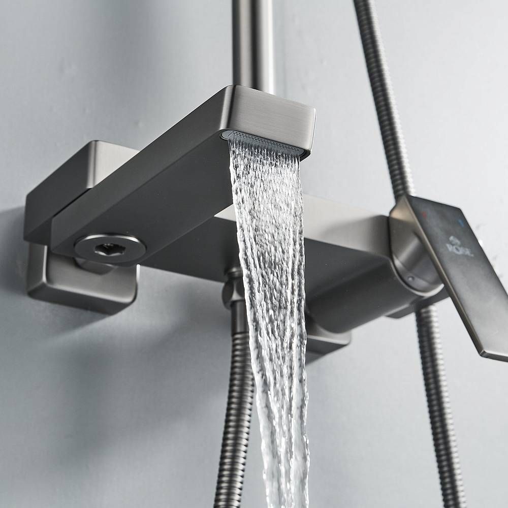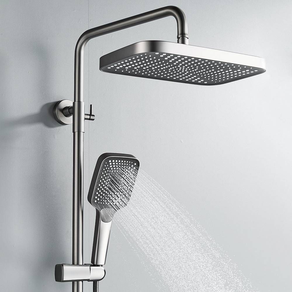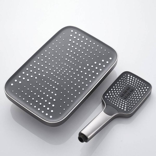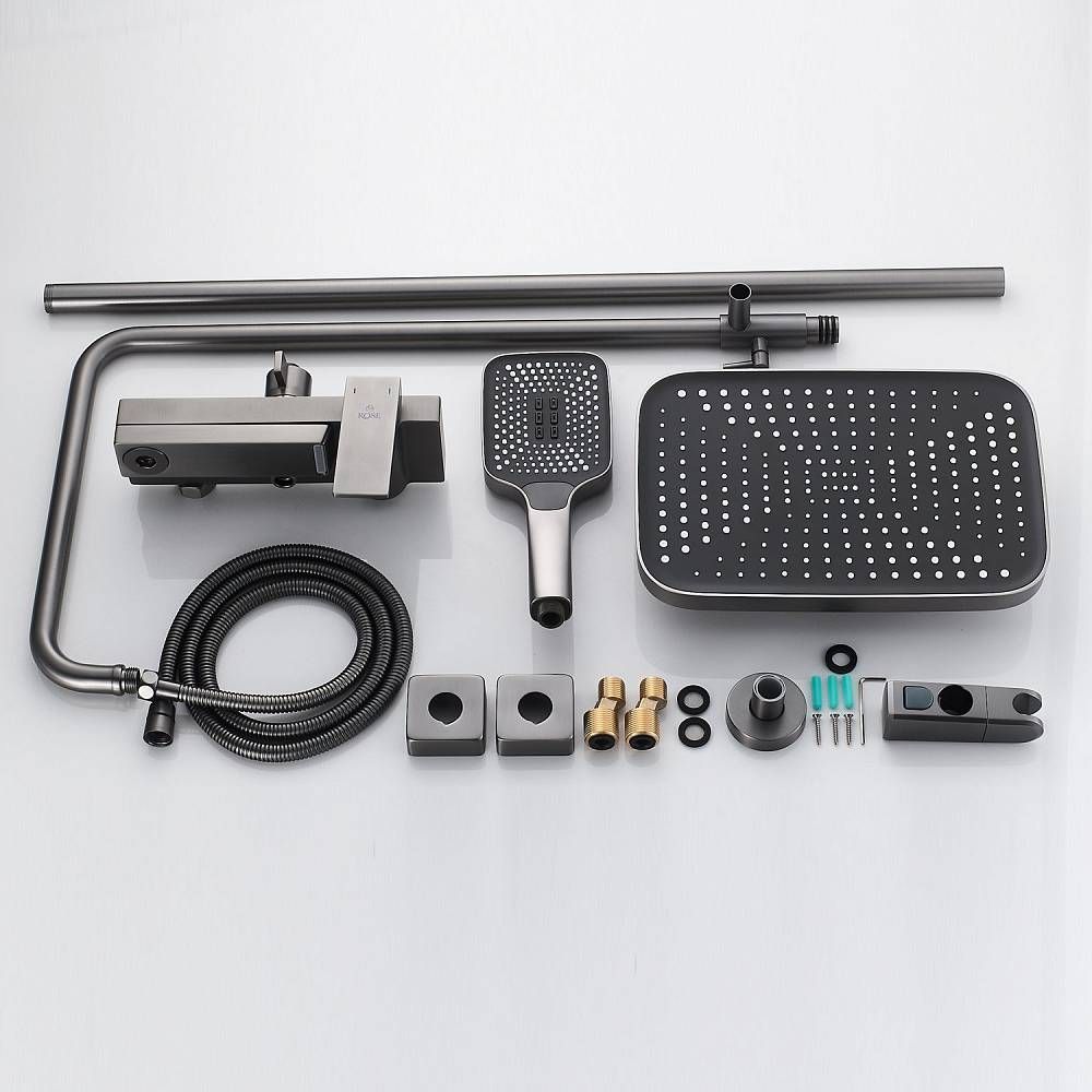 Душевая система Rose R1836T, пепельный.Монтаж: настенный.Стилистика дизайна: современный стиль.Управление: рычажное.Размер верхнего душа: 31,5x21.Форма верхнего душа: прямоугольная.