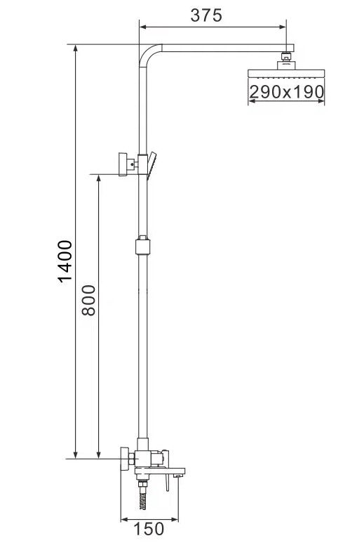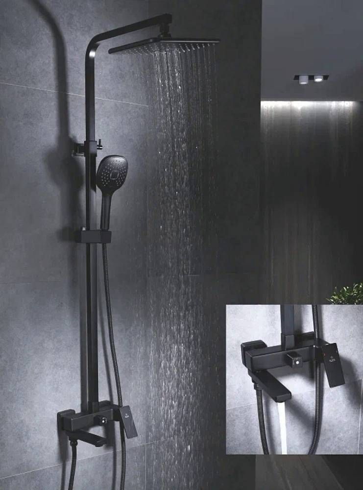 Душевая система Rose R2836H, черный.Монтаж: настенный.Стилистика дизайна: современный стиль.Управление: рычажное.Размер верхнего душа: 29x19.Форма верхнего душа: прямоугольная.