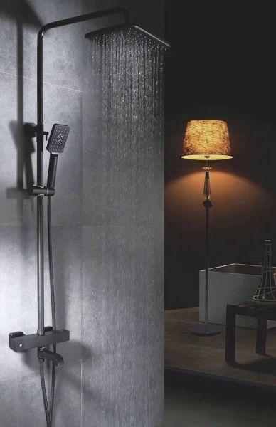 Душевая система с термостатом Rose R3536H, черный.Монтаж: настенный.Стилистика дизайна: современный стиль.Управление: термостат.Размер верхнего душа: 30x20.Форма верхнего душа: прямоугольная.