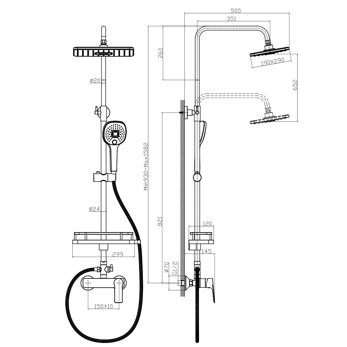 Длина душевого шланга: 150 см.