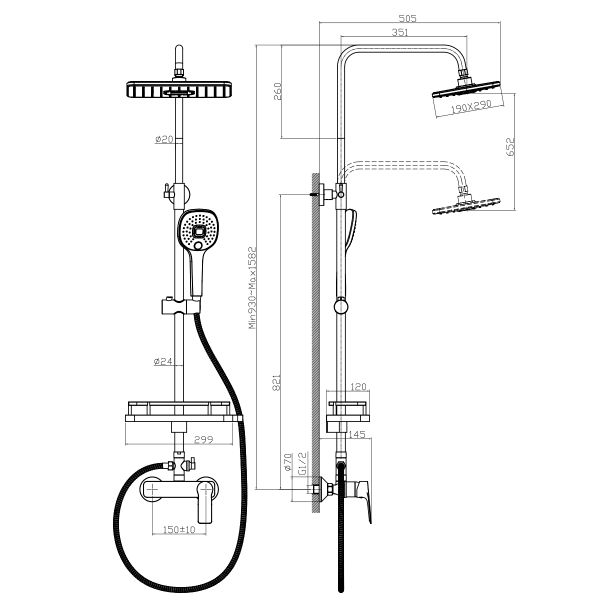 Душевая стойка Rossinka RS27-45 для ванны и душа