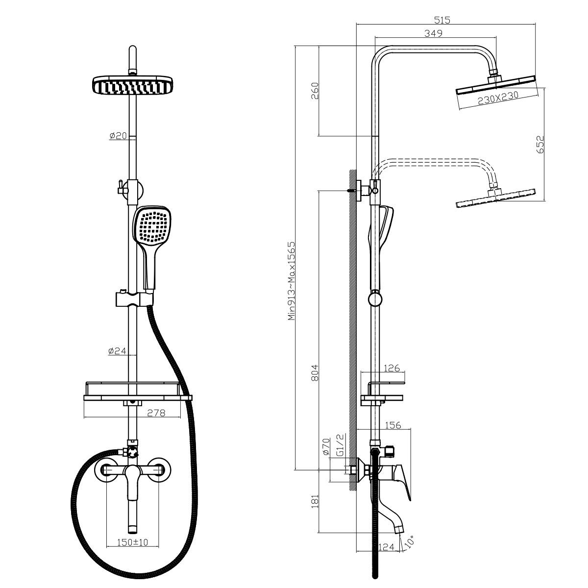 Длина душевого шланга: 150 см.