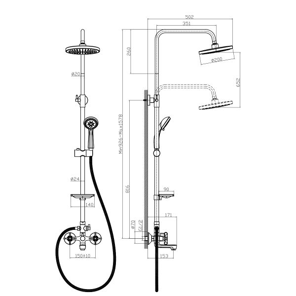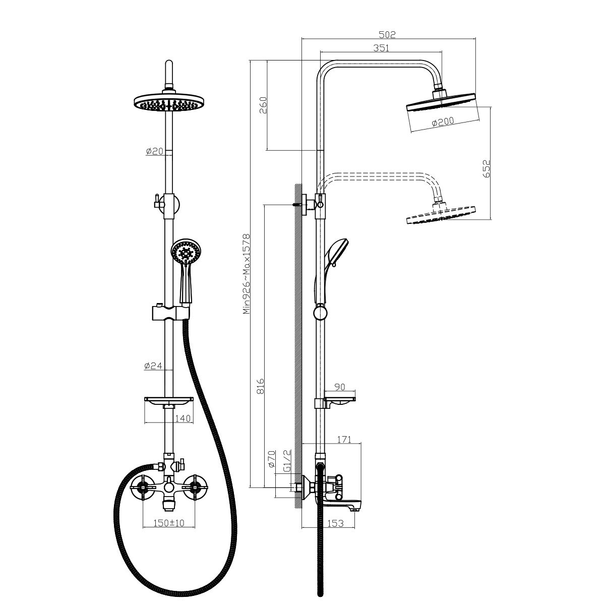 Длина душевого шланга: 150 см.