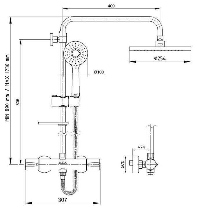Душевая стойка E.C.A используется в ванных комнатах. Модель оснащена круглыми верхним душем и лейкой. Термостатический картридж обеспечивает поступление воды заданной температуры. Изделие выполнено из латуни, которая отличается прочностью, долговечностью и устойчивостью к перепадам температуры.Дополнительные характеристики: