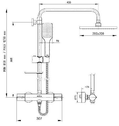 • Вынос верхнего душа: 400 мм