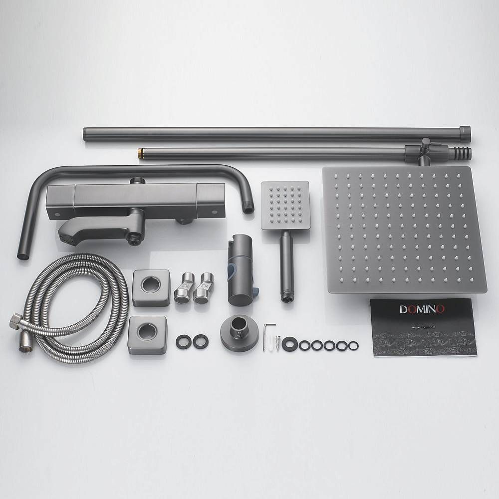 Душевая стойка с термостатом Shevanik S3096T оружейная сталь