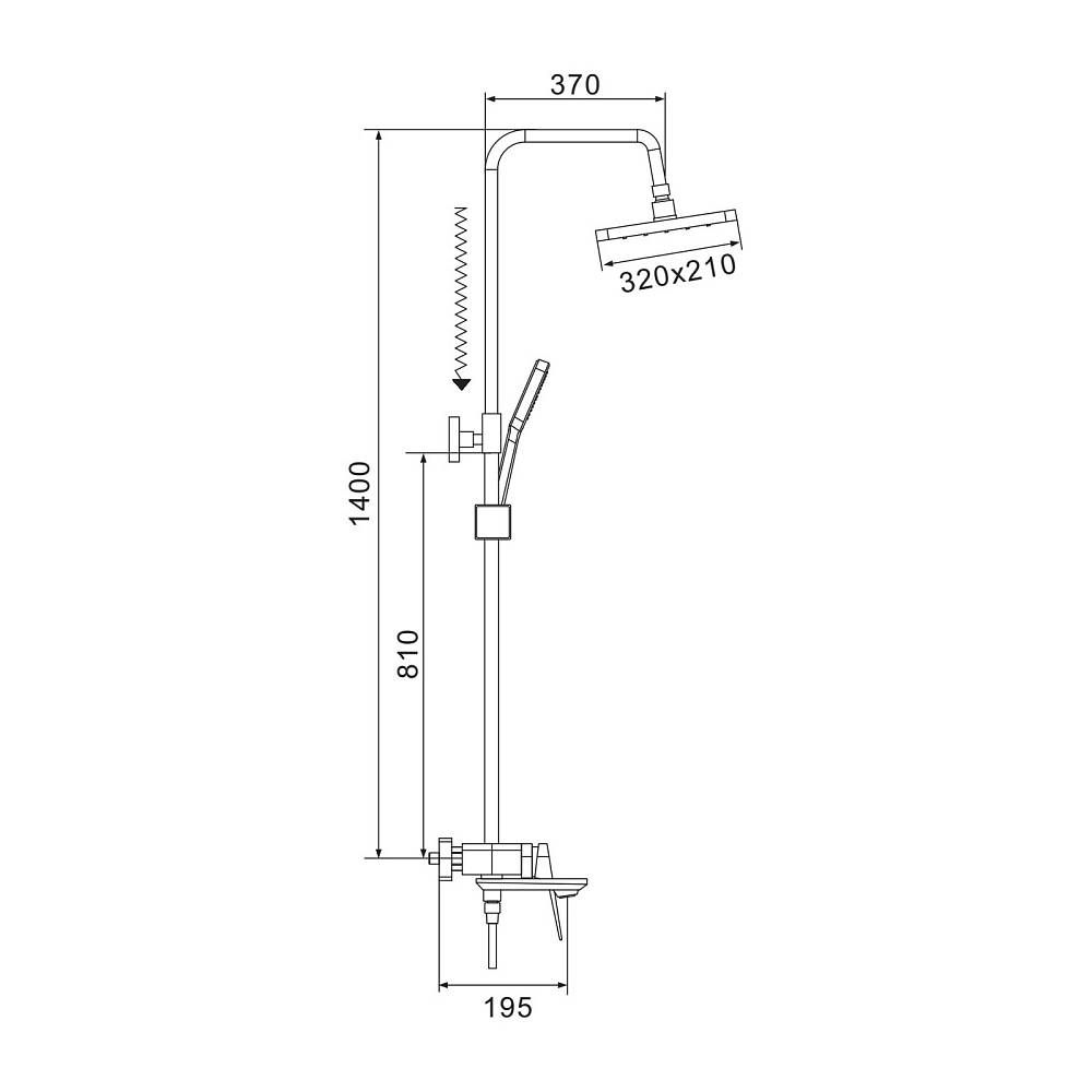 Верхний душ из ABS пластика размером 320х210 мм с силиконовыми форсунками, которые легко очищаются от известкового налета, подарит вам роскошные ощущения от душа. Благодаря встроенному шарниру, верхний душ регулируется по наклону вдоль всей оси, подстраиваясь под ваши предпочтения.