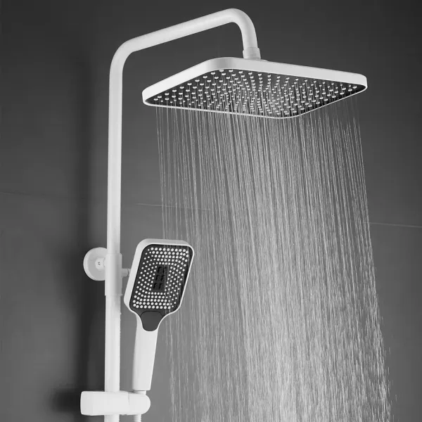 Душевая система Shevanik S6836C, белый.Количество режимов струи: 3.Размер верхнего душа: 31x21,5 см.Управление: рычажное.Излив для наполнения ванны: да.