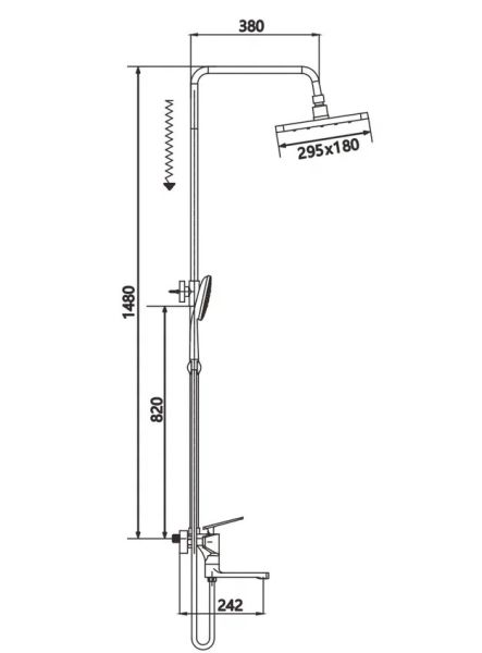 Душевая система Shevanik S8036H, черный.Количество режимов струи: 3.Размер верхнего душа: 29,5x18 см.Управление: рычажное.Излив для наполнения ванны: да.