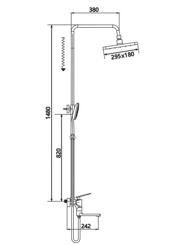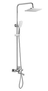 Душевая система Shevanik S8136, хром.Количество режимов струи: 3.Размер верхнего душа: 29,5x18 см.Управление: рычажное.Излив для наполнения ванны: да.