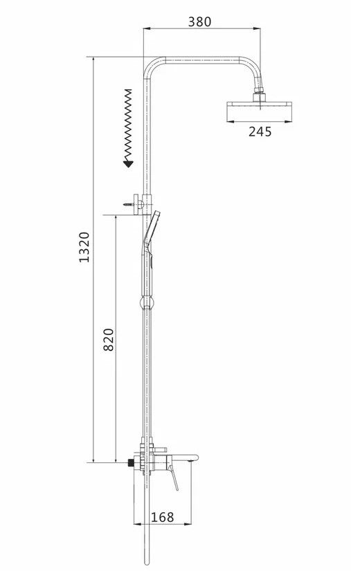 Душевая система Shevanik S8336H, черный.Количество режимов струи: 3.Размер верхнего душа: 24,5x24,5 см.Управление: рычажное.Излив для наполнения ванны: да.
