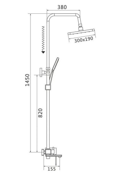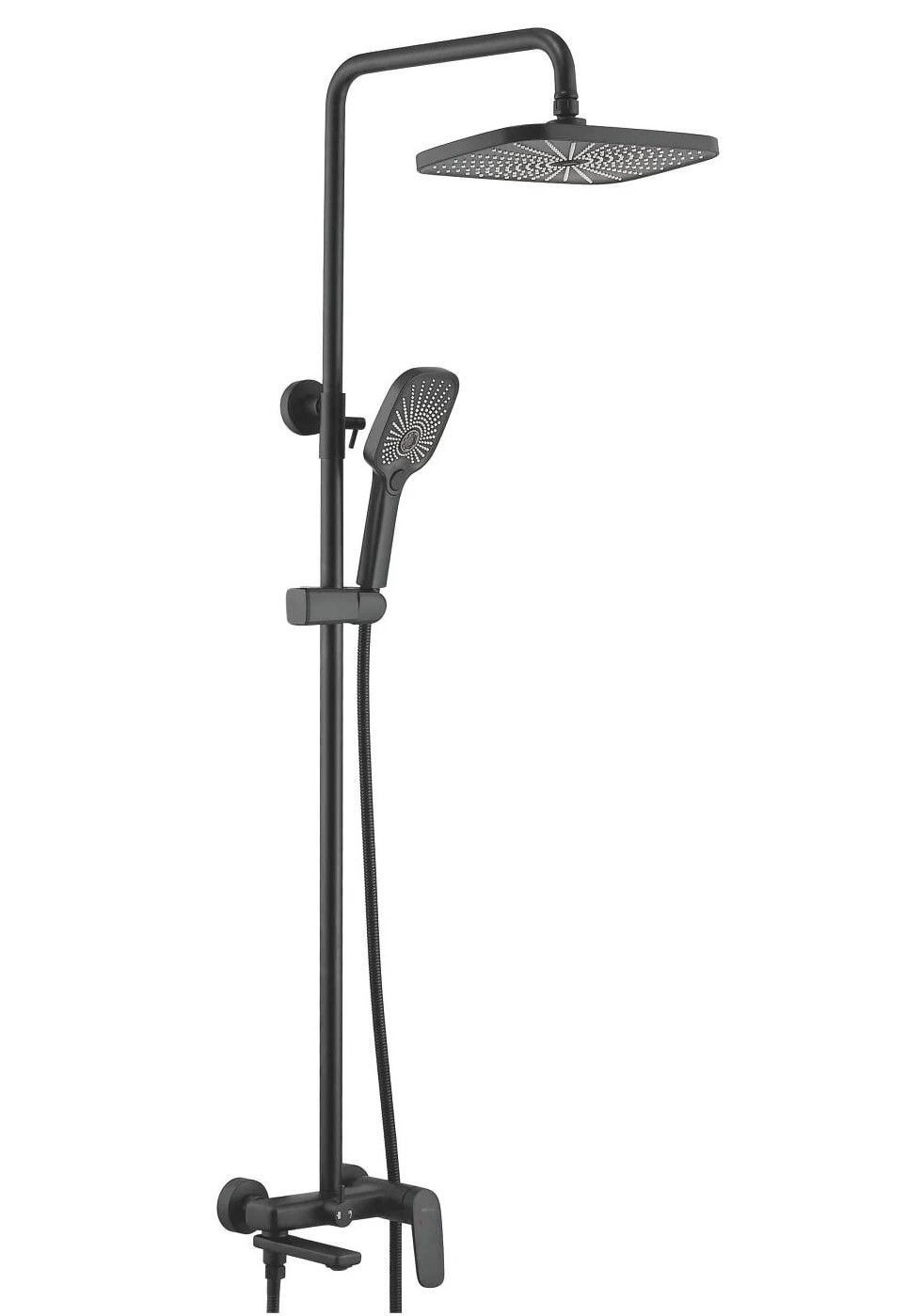 Душевая система Shevanik S8536H, черный.Количество режимов струи: 3.Размер верхнего душа: 30x19 см.Управление: рычажное.Излив для наполнения ванны: да.