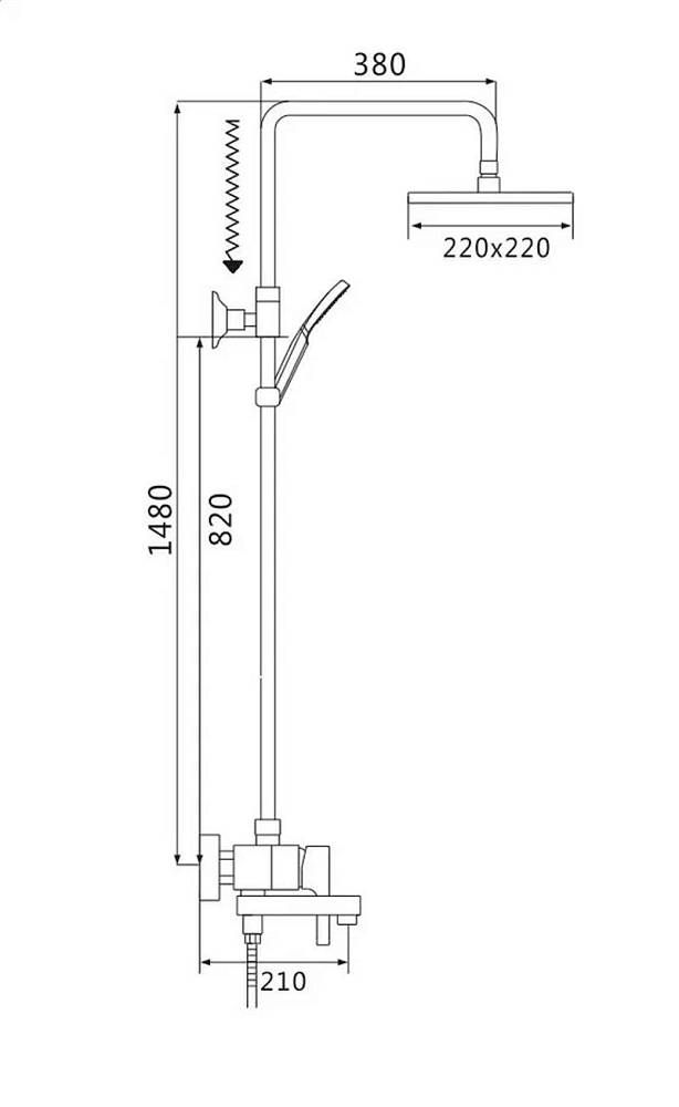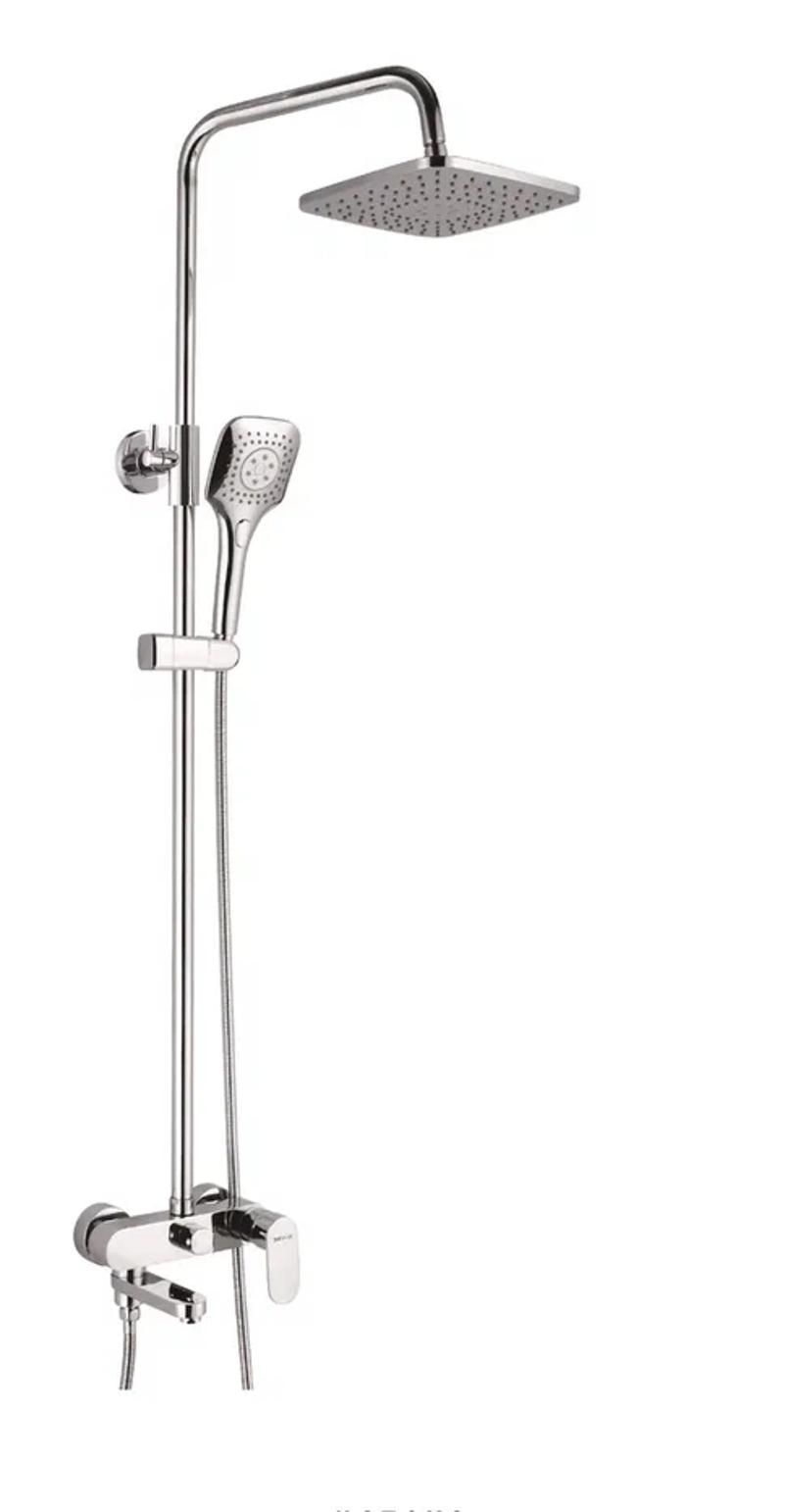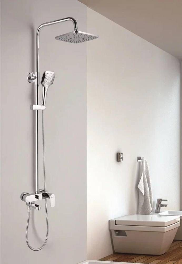 Душевая система Shevanik S8636, хром.Количество режимов струи: 3.Размер верхнего душа: 23x23 см.Управление: рычажное.Излив для наполнения ванны: да.