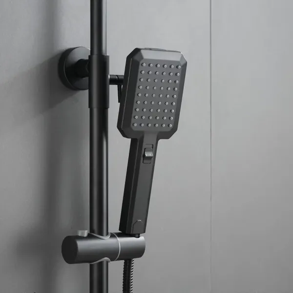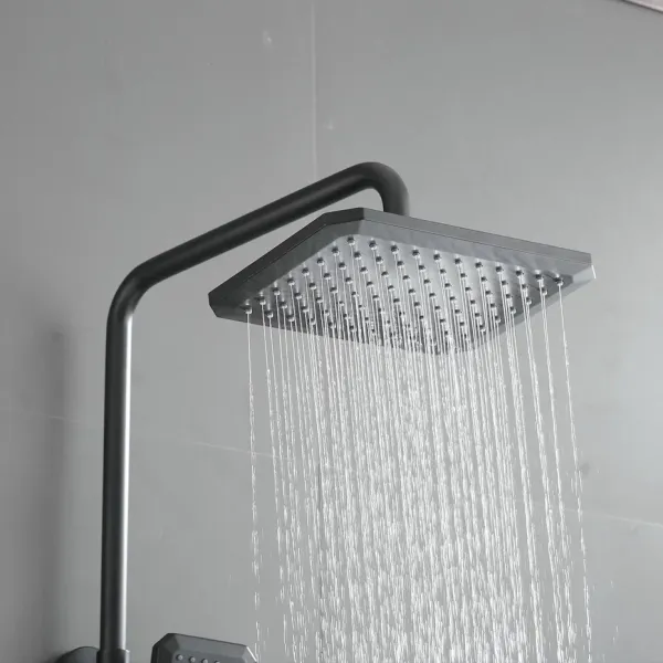 Душевая система Shevanik S8836H, черный.Количество режимов струи: 2.Размер верхнего душа: 25x19 см.Управление: рычажное.Излив для наполнения ванны: да.
