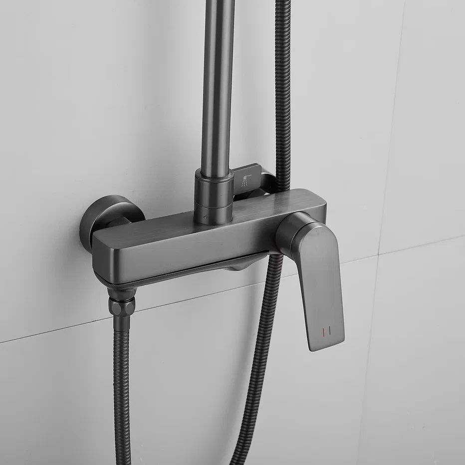 Душевая система Shevanik S9136T, оружейная сталь.Количество режимов струи: 3.Размер верхнего душа: 31x21,5 см.Управление: рычажное.Излив для наполнения ванны: да.