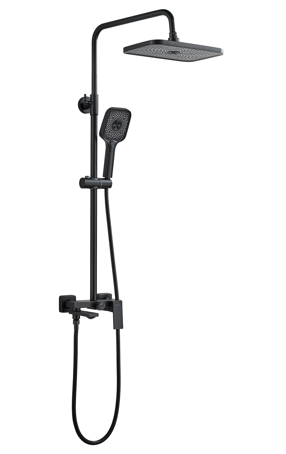 Душевая система Shevanik S9636H, черный.Количество режимов струи: 3.Размер верхнего душа: 29x19,5 см.Управление: рычажное.Излив для наполнения ванны: да.