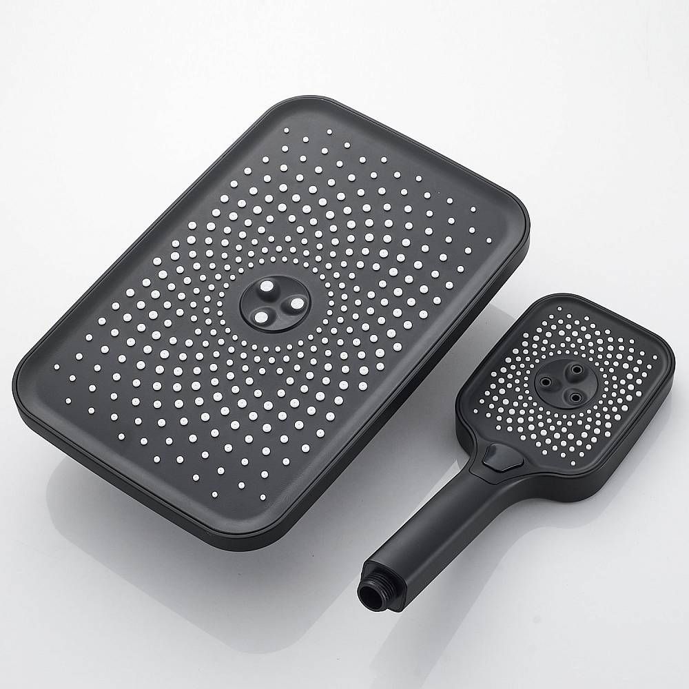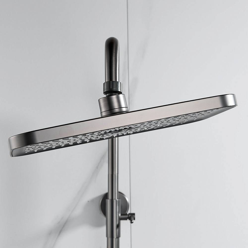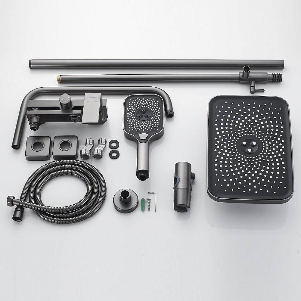 Душевая система Shevanik S9636T, оружейная сталь.Количество режимов струи: 3.Размер верхнего душа: 29x19,5 см.Управление: рычажное.Излив для наполнения ванны: да.